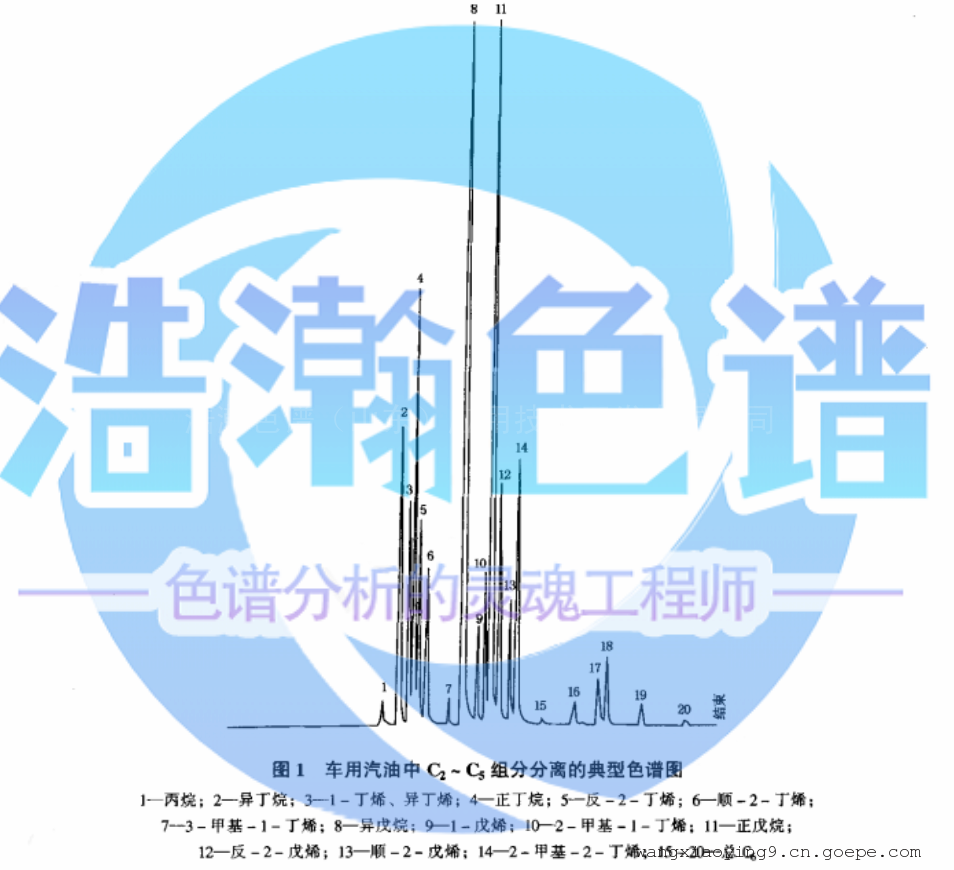 4 意义 在使用GB/T 11132方法对汽油的烃类进行测定时,有些汽油馏分需要在测定前用SH/T 0062方法脱戊烷才能使测定结果可靠。因其脱除的C2~C5组分占汽油的4%~13%(V/V),用本标准测定C2~C5的烃类组成,可使汽油馏分的烃类测定数据完整、准确。